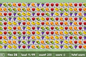 消消乐游戏,碰到两个或两个以上相同的水果就可以消掉。@@@鼠标点击操作。