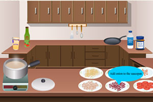 教你做道菜,香喷喷的培根馅饼。快来试试当大厨的感觉吧!@@@用鼠标操作,按提示来把各种调料食材组合在一起。就做好了各种美味的培根馅饼。