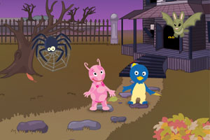 万圣节的晚上,小朋友们要去参加万圣节派对哦,快来布置一下吧。@@@用鼠标操作布置派对。