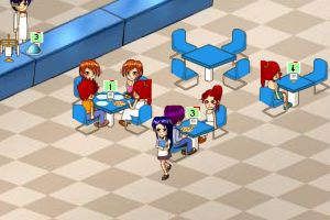 新出的餐厅游戏,操作有些不方便,不过内容很丰富,可以请工人、调整工人工资、解雇工人,买餐厅座位、增加pizza品种、增加甜品等等,@@@鼠标操作,先把客人请到座位上,然后点菜,送菜单给厨师,厨师做好后拿给客人,客人吃完后收拾桌子结帐。这款游
