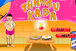 印度风情的街头小吃摊,印度咖喱浇汁饭,炸面包圈,煎蛋,饮料...两个伙计在街头摆起小摊叫卖,客人来了为食物浇汁,撒椒盐,让食物更美味吧!@@@鼠标操作,饭是浇最左边的,面包圈浇左数第二个,煎蛋浇椒盐,杯子灌最右边的饮料。来试试你能否经营好街