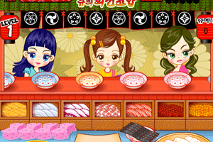 鼠标操作。拿最右边白色米饭放在板上,拿绿色放在上面,然后拿要做的三种里面的一种盖在最上面(在一排有七种食物里面选),不同的寿司放不同的碗,放错碗可用洗碗棉擦掉,拿错食品丢到左边垃圾箱里!