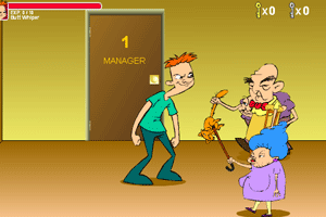 操作方法:a为拳攻击,d为必杀,s为捡起物品或者尸体,↑↓←→控制方向,双击方向为跑动。