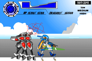 方向键控制机器人的移动,a键是近战攻击,z键是机枪,x键是大炮,长按c键发射光子炮,空格键是刀!