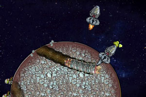 在宇宙里有一个长满了钻石的星球,外星人为了开采钻石,纷纷来到这个星球。但是这个星球有一条靠吃钻石为生的巨型蠕虫。为了保卫自己的食物,它开始了星球保卫战。@@@鼠标控制蠕虫移动方向。游戏主界面下方长条是蠕虫的生命值,左边的数值是蠕虫攻击力,左