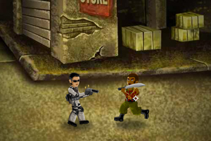 特种兵接到命令,来到一处犯罪团伙的基地,要把他们全部消灭。但明刀易躲,暗刀难防,要小心应付。@@@键盘w跳,连按两下可以在空中二连跳,ad控制左右移动,单击鼠标左键射击。打死敌人后敌人有可能掉落物品,可以捡,但千万要看清楚,如果是地雷就要躲