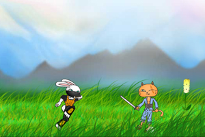 独眼猫武功学成,踏上了闯荡江湖的生活。@@@键盘方向键↑跳,在空中按↑二段跳,↓下蹲,←→控制左右方向,a攻击,s魔法攻击,d防御。
