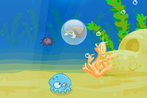 小章鱼为了使自己的领地不受侵犯就同敌人展开了一场恶战,它的手段很高明利用泡泡将其它敌人赶出去!@@@awsd移动,鼠标控制喷泡泡。把上方或沙面上的海洋生物用泡泡包住,包了3层之后那些生物就会飘上去,远离可爱的小章鱼。