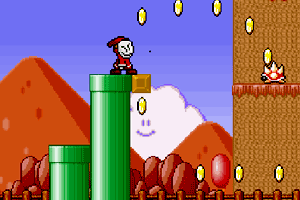 一名超级强盗进入玛丽世界,主要目的收集金币,并且要避免敌人攻击,赶紧的去欣赏一下吧!@@@方向键控制人物的移动,首先将人物移动关口,然后按空格键进入,游戏中空格键跳跃!