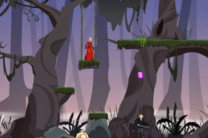 方向键控制移动,空格键攻击,鼠标点击选择游戏下方的人物,可以交替选择!公主先到达放绳子的地方,把绳子扔下帮助勇士过关,出现怪兽的地方勇士先要把怪兽杀死!