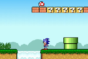 索尼克版的超级玛丽,boss可是大名鼎鼎的玛丽奥,看看你能想出什么办法将boss消灭掉呢?赶紧去战斗中想吧!@@@方向键←→控制人物的左右移动,方向键↓翻滚,a键跳跃,z键子弹(数量有限)。提示:跳到玛丽奥头上可以将它踩死。