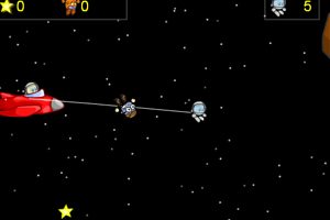方向键控制飞船,鼠标键移动飞船前面的人物,进行营救。