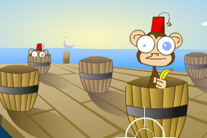 一群调皮的猴子偷了香蕉躲到木桶内,现在你就等它把头伸出来时射击它,射到了就会拿回香蕉!@@@鼠标操作,试试你能拿回多少香蕉。