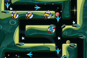 你是宇宙太空的总指挥官,有敌人入侵到你的基地,想办法运用你的策略摆好阵型等敌人送上门时消灭他们!@@@鼠标操作,单击右侧的火箭战机然后放在合适的位置上,全部放好后点击右下角的按钮进行战斗。