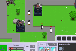 不错的守城小游戏,引用了英雄元素,可以更灵活的打击侵略者!@@@点右下角“start”,选择你的“hero”,再点“start game”,点右面“end info”跳过介绍开始游戏。鼠标点击游戏下方各类炮塔布置到合适位置,然后点“clic
