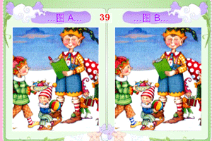 本游戏有3关,每关A和B两图有5除不同,小朋友你能把他们找出来吗?