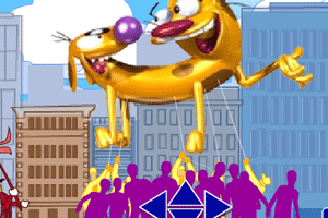 猫狗合体的气球在大街上飘啊飘,千万要小心不要撞到建筑物喔。@@@鼠标点击屏幕下方的方向键控制移动。