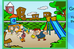 几个小朋友在公园里玩耍,会发生什么样的事情呢?@@@鼠标操作,拖动碎图片到相应位置上即可。