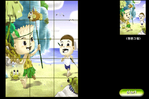 两个小男孩在海边抓鱼的小图片,很有意思,一起来拼吧。@@@鼠标操作,拖动碎图片到相应位置上即可。