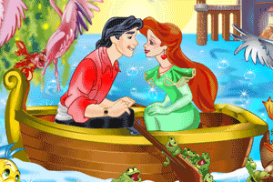 美丽的美人鱼和自己心上人划着小船在美丽的湖面上玩耍,可爱的小青蛙在一边玩耍嬉戏真是美丽极了...@@@鼠标单击下面的按钮给美人鱼和她的心上人换装!