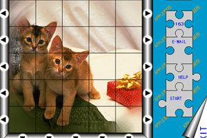 两只可爱的小猫咪正用那水汪汪的眼睛看着你呢,赶快来把图片拼好吧!@@@鼠标控制操作,把图片放到相应的位置上拼好。