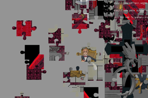 一款比较个性的拼图小游戏……你能尽快把它拼好吗?@@@鼠标点击操作,把图片放到相当位置上拼好。