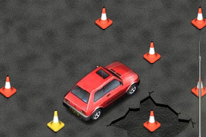 在60秒内,尽你所能开车撞倒所有路障,但是别撞到树喔!