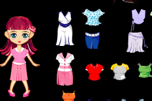 美丽青春可爱的小女生总爱将自己打扮的漂漂亮亮的,你可以去帮她一下!@@@鼠标单击拖动漂亮的衣服给小女孩换装。