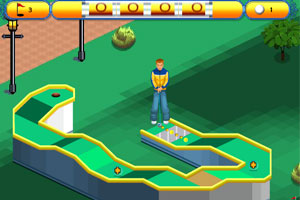 一款可玩性很强的小游戏,画面也非常精美,有两个人物要供选择,开始你可以选择男或者女,共有99关可挑战,开始挑战吧~@@@鼠标操作将球打进洞即可。